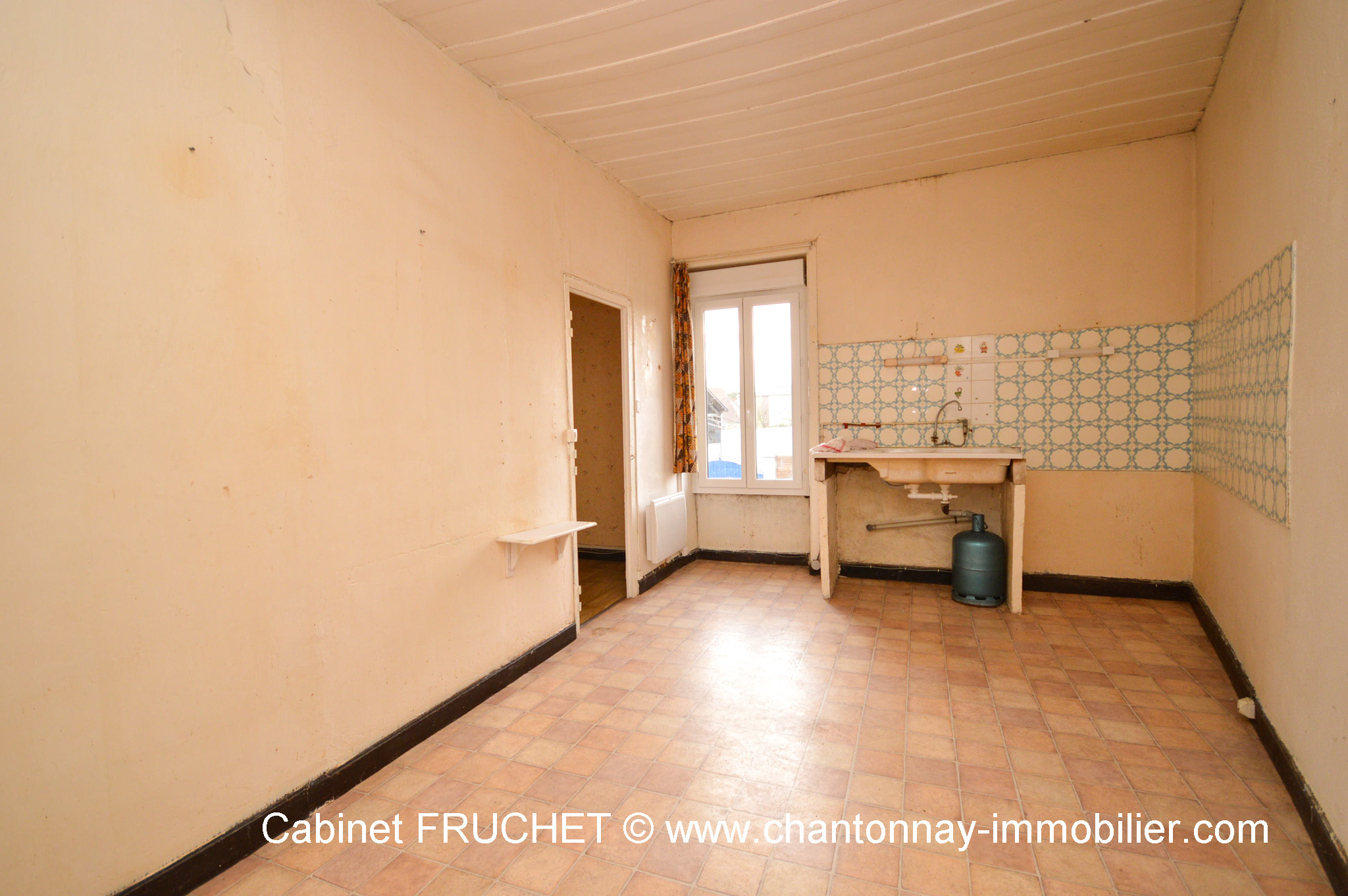Une maison de ville à rénover d’environ 100 m2 comprenant au rez-de-chaussée : Salon avec cage d’escalier. A l’étage, palier, cuisine, séjour, dégagement, deux chambres, salle de bains et une ancienne cuisine. Cave sous-parties.